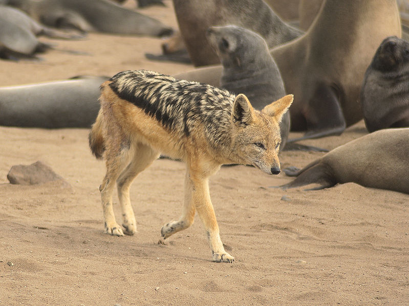 O Chacal-de-dorso-negro (Canis mesomelas), é um membro da família Canidae. Tem hábitos noturnos, e durante o dia escapa do calor refugiando-se no seu esconderijo, entre as rochas, ou debaixo da vegetação. Possui uma grande resistência que o permite correr grandes distâncias durante toda uma noite se precisar. Ainda que goste de uma vida solitária, pode chegar a formar pequenos grupos conformados pela sua própria família. Alimenta-se de pequenos mamíferos, insetos e répteis, mas prefere as carcaças.